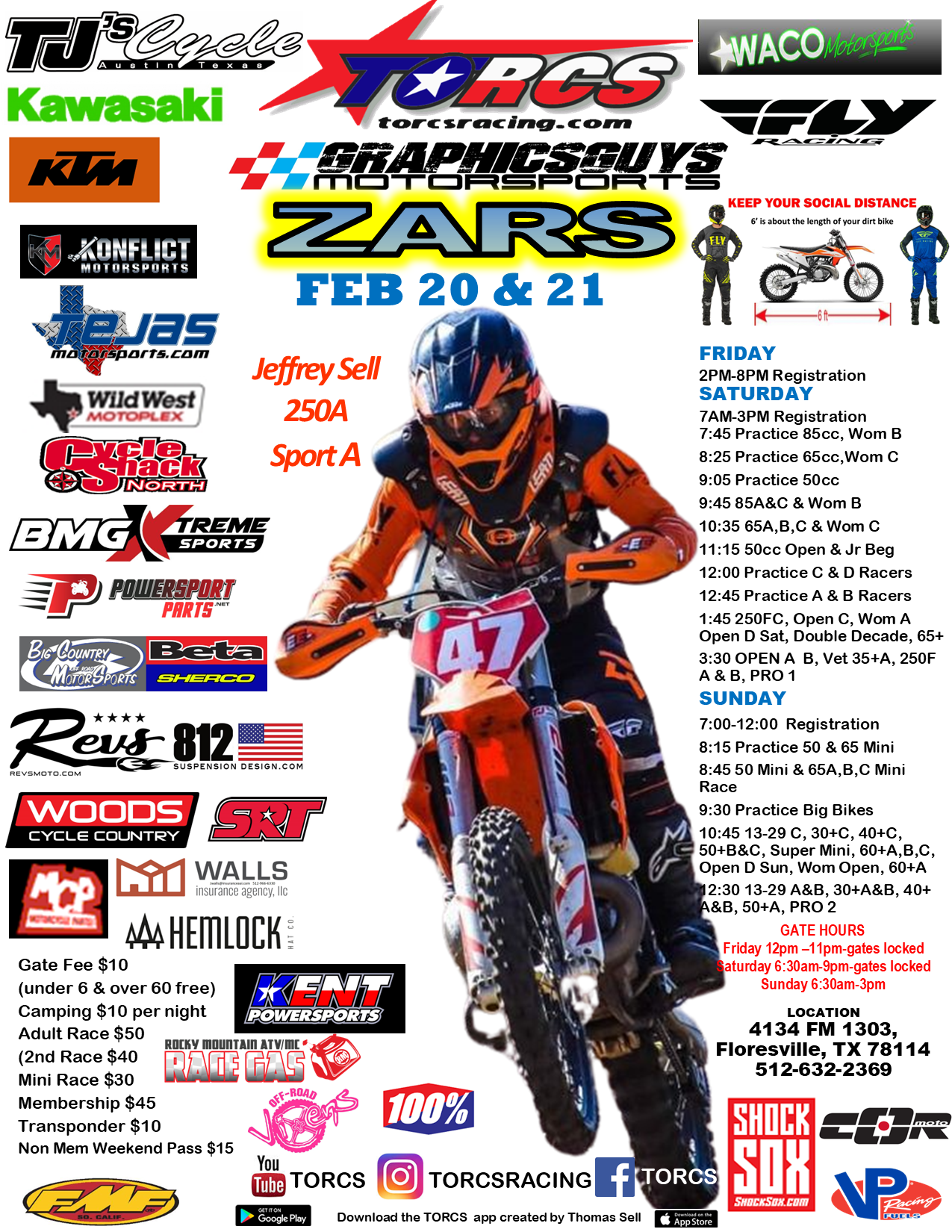 Discounted online pre entry will close Friday 2/12 at 6pm. Full price pre entry will close Wednesday 2/17 at 6pm. Don’t forget to add your class, bike number and brand under “Add an optional note to seller”. A link will be posted to follow to sign your waiver on TORCS Facebook Page. Once you follow the link and sign your waiver you do not need to come to registration unless you need a transponder or numbers. PRE ENTRY IS FOR CURRENT 2021 TORCS MEMBERS ONLY