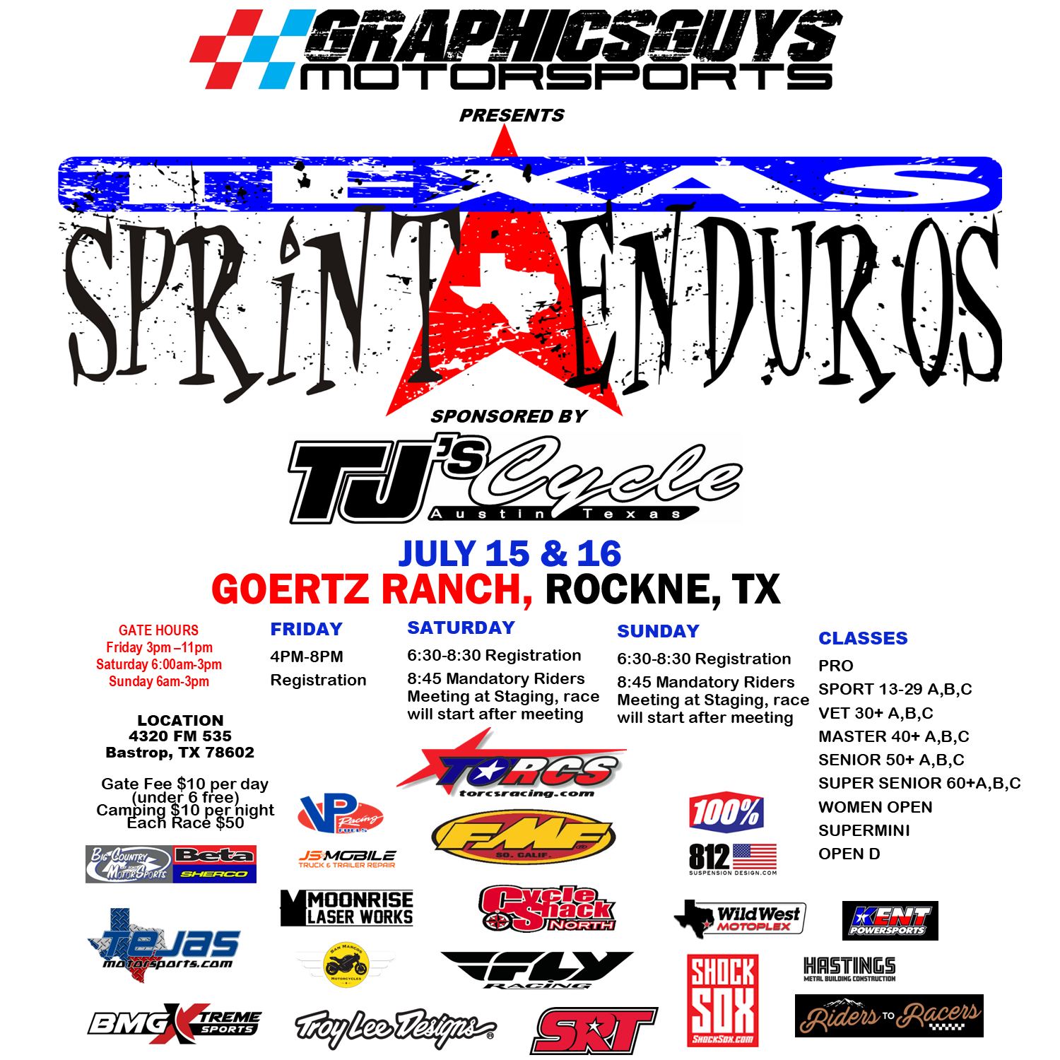 Two days of Sprint Enduro Racing. Race one day or both. One Cross Test and one Enduro Test each day. Racers will make three attempts on each test. The total cumulative time from each test will be used for race results. The rider with the fastest cumulative time from the 6 test wins.